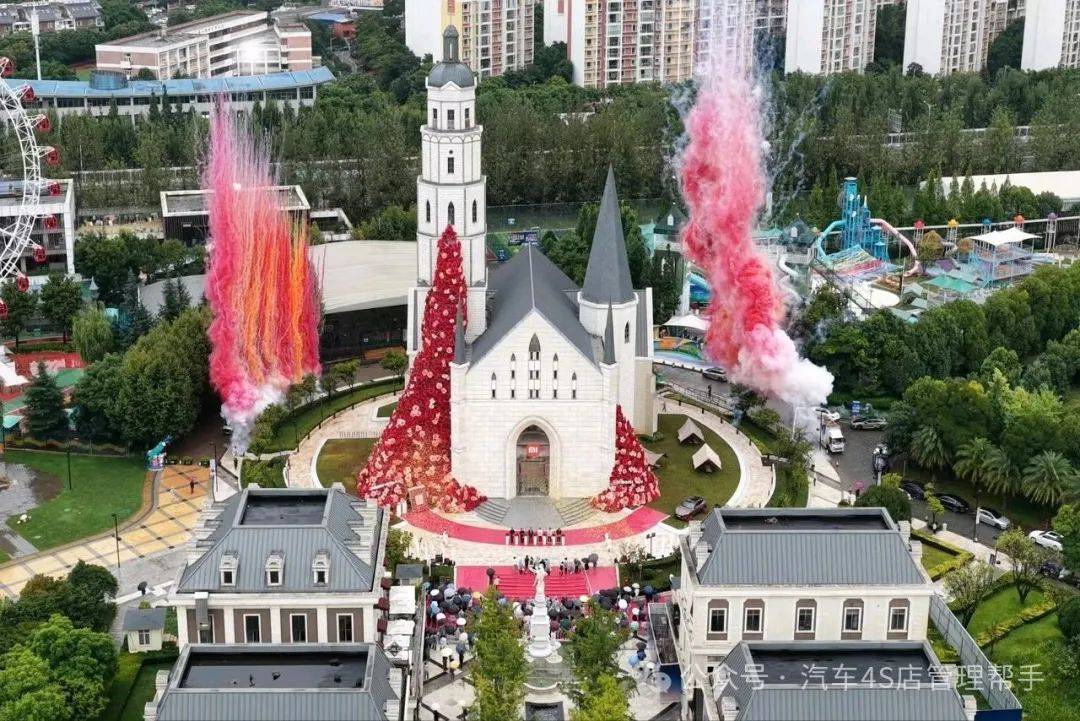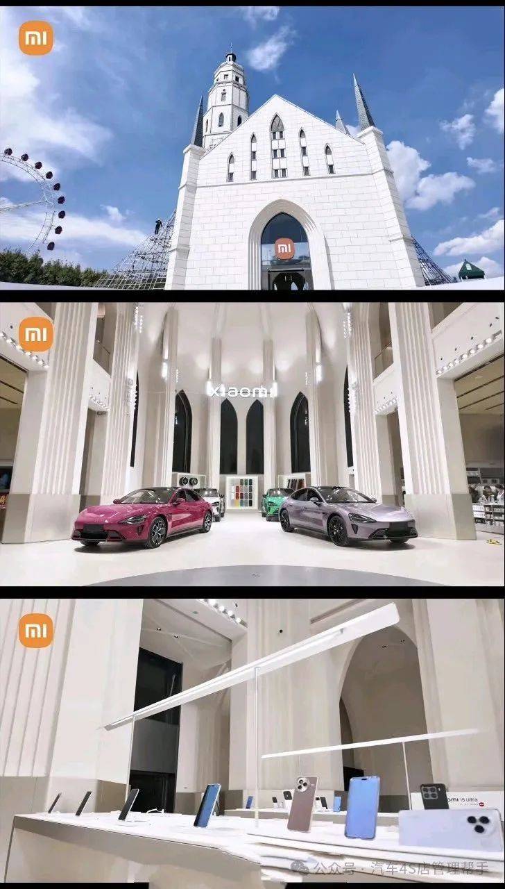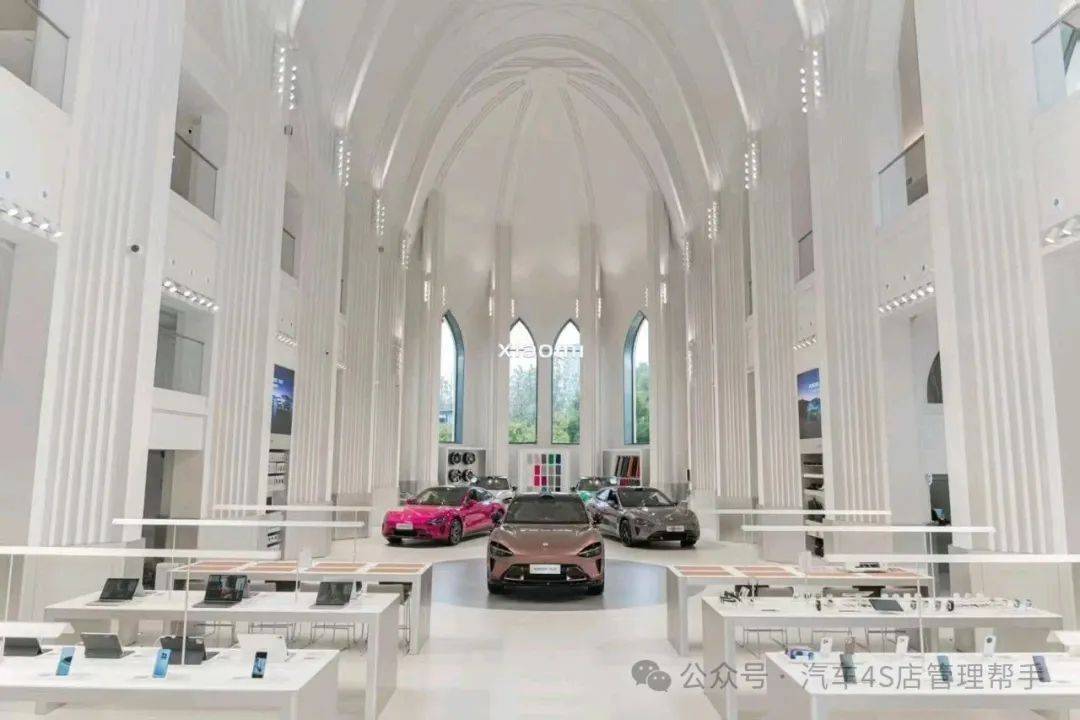 建筑风格:门店原址为婚礼礼堂,现采用仿哥特式教堂设计,拥有尖拱门、高耸的交叉内拱顶和大面积玻璃幕墙,整体呈现礼堂或城堡般的视觉效果,被网友称为“不像卖硬件的门店”“买个车都想结婚了”!